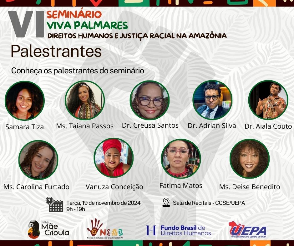 O VI seminário Viva palmares organizado pelo núcleo de estudos Afrobrasileiros em parceria com o Instituto Mãe Crioula e tendo apoio da UEPA, vem justamente trazer importantes reflexões a cerca do debate sobre democracia e racismo, ou seja, questões que pelos dados estatísticos parecem não caminhar juntos.